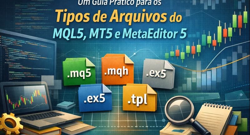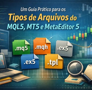 Um guia técnico e educacional sobre a estrutura de arquivos do ecossistema MetaTrader 5. Entenda para que servem os arquivos do MQL5, como .mq5, .mqh, .ex5, .set e .tpl, qual o papel de cada um no desenvolvimento de robôs, indicadores e scripts, e como organizar projetos de forma mais clara, modular e consciente.